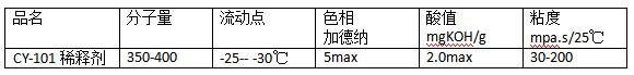 CY-101稀釋劑與聚氨酯樹脂和其他樹脂有良好的相容性,其優(yōu)良的低粘度起到很好的降黏效果。